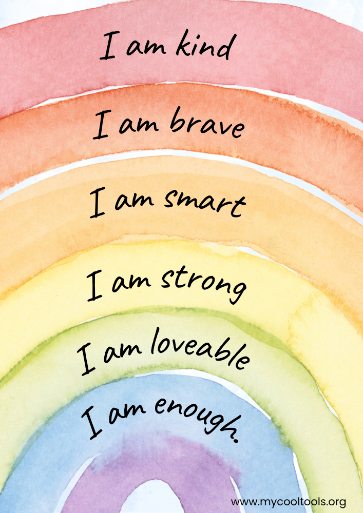 Each rainbow layer holds an empowering affirmation — helping children build confidence, self-worth, and inner safety.